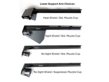 Replacement lower support arms for use on the FMS Accessories rifle mount. Select the lower support arm variant that matches your need. All support arms come with black powder coated finish and the noted muzzle cup installed. Reuse the mounting hardware from the existing rifle mount. Standard length of 17.5". Note: Special CHP 14" Support Arm not in photo.